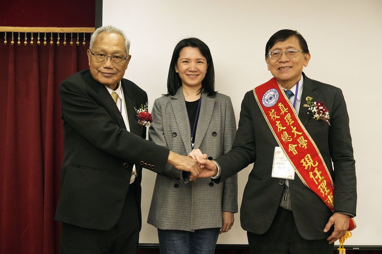 真理大學校友總會日前舉辦「第四屆會員大會暨總會長交接典禮」,新任總會長由中國砂輪副董事長白文亮接任,交接儀式由校長李宜芳監交,由第三屆總會長張聰聯將印信交予第四屆總會長白文亮。