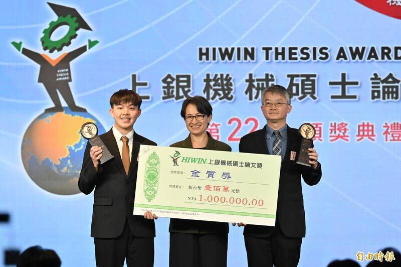 今年共有來自25所大學、96篇論文參賽,最終選出16篇優秀論文,以台灣大學表現最亮眼,推薦14篇參賽,9篇進入決審、6篇獲獎,為最大贏家,其中,台大機械工程學系碩士生沈意軒以「輪腳複合機器人上可變多接觸地點之全機力控制架構開發」勇奪金質獎,獲得新台幣100萬元獎金,展現台灣在智慧機器人與精密機械領域的研發實力;清華大學動力機械工程學系李珮筠則拿下銀質獎。